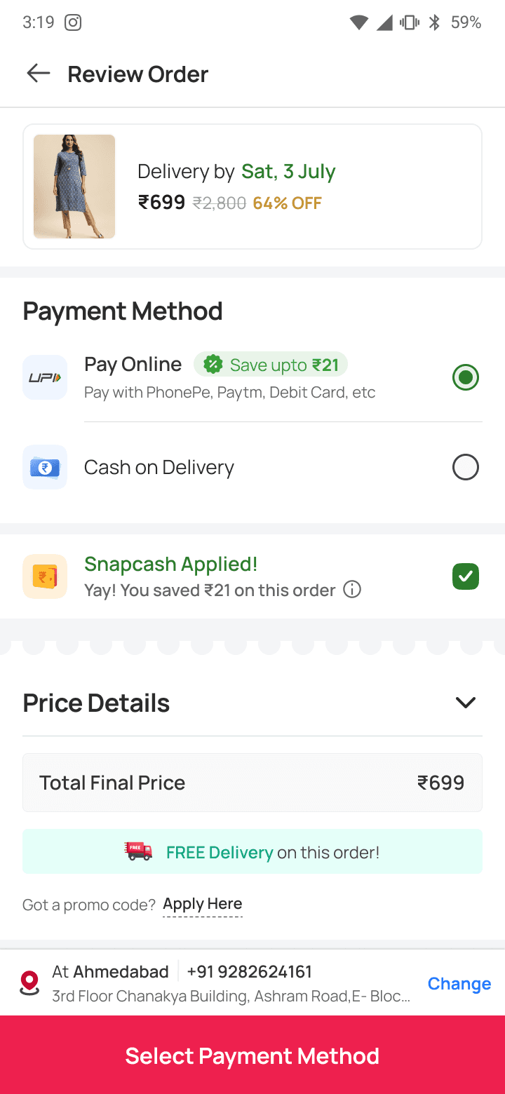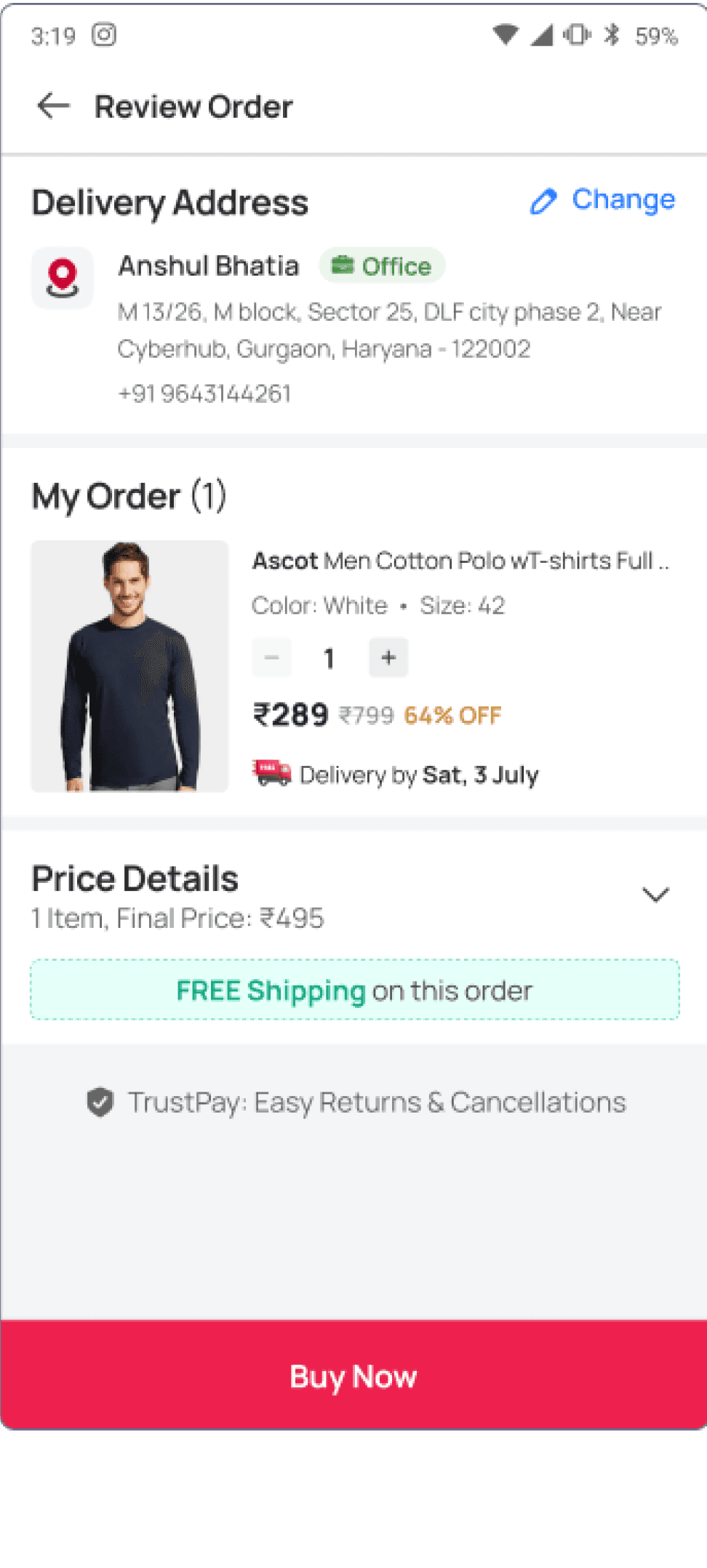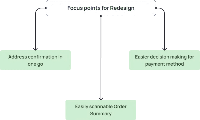 Any user landing on Checkout page is a high-intend user. A redesign should focus on a smoother experience since user’s decision making is done for the product.